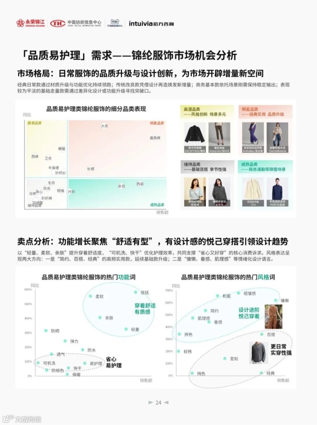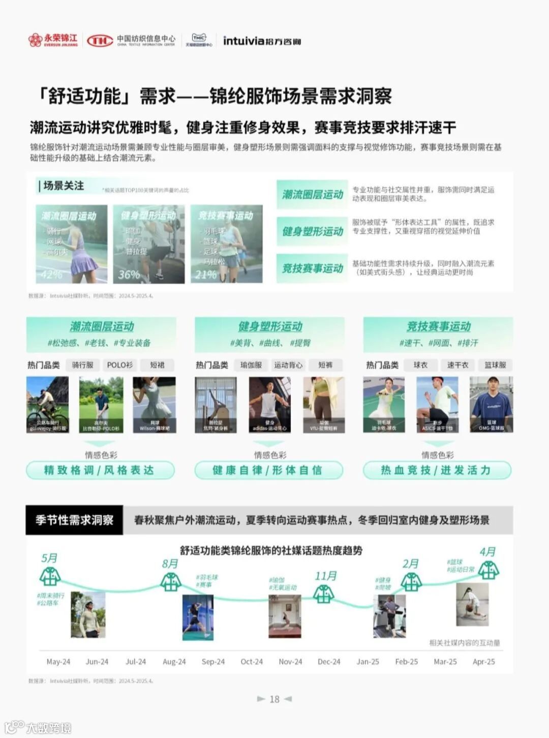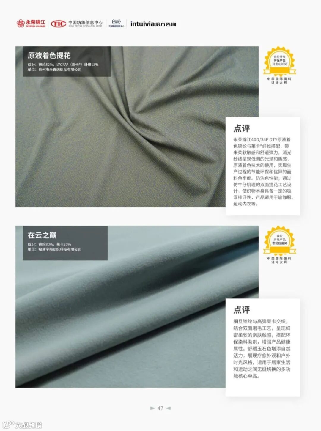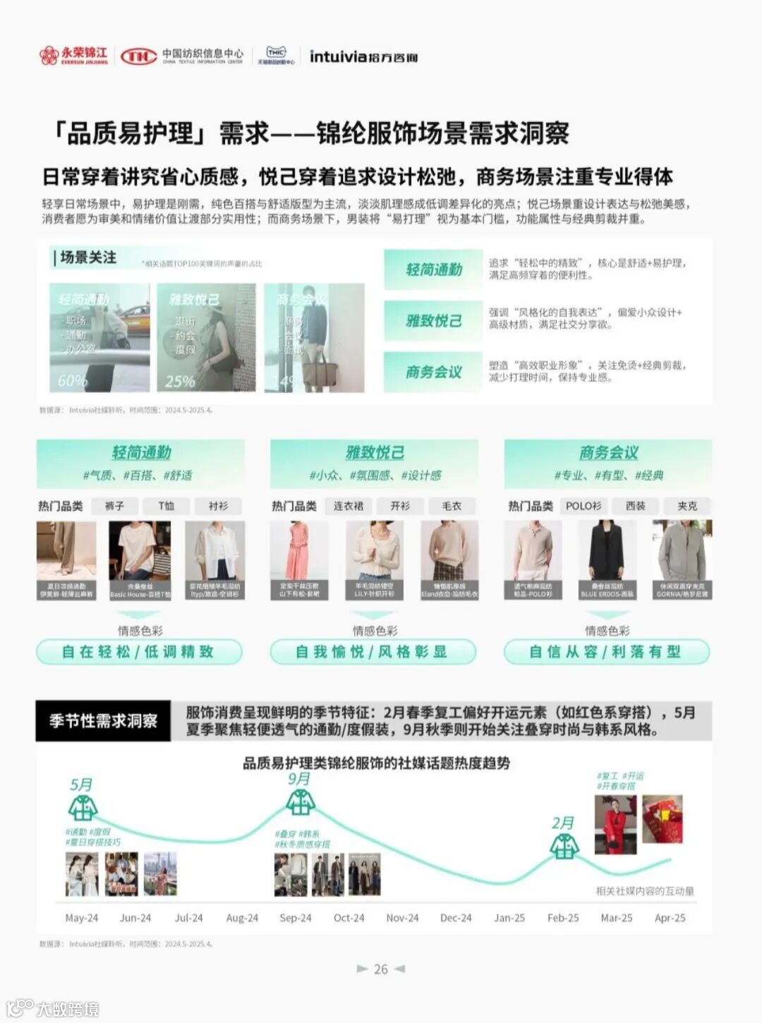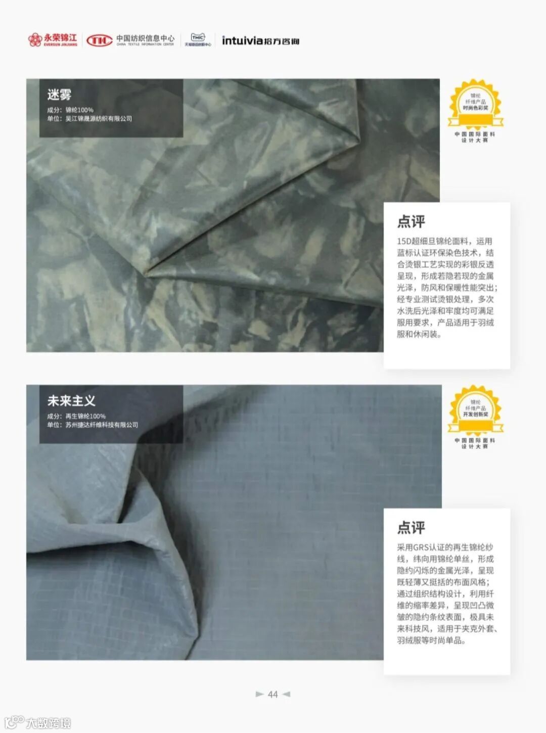 防护衬衫、羽绒服等成熟品类因功能性突出表现稳健;轻量化运动装作为高潜力单品快速增长,契合通勤、休闲及轻运动场景需求;光泽感夹克、裙装等明星产品凭借时尚设计与多场景适配优势引领风格潮流。消费者对环保材质的关注度不断提升,再生锦纶、生物基锦纶等绿色纤维日益受到市场青睐。