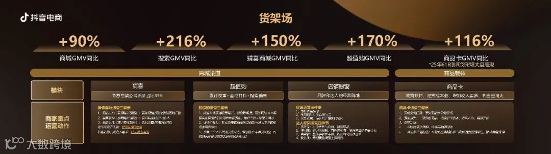 商品卡是电商转化的基础载体。商家需加强货架场建设,提升商品卡GMV: