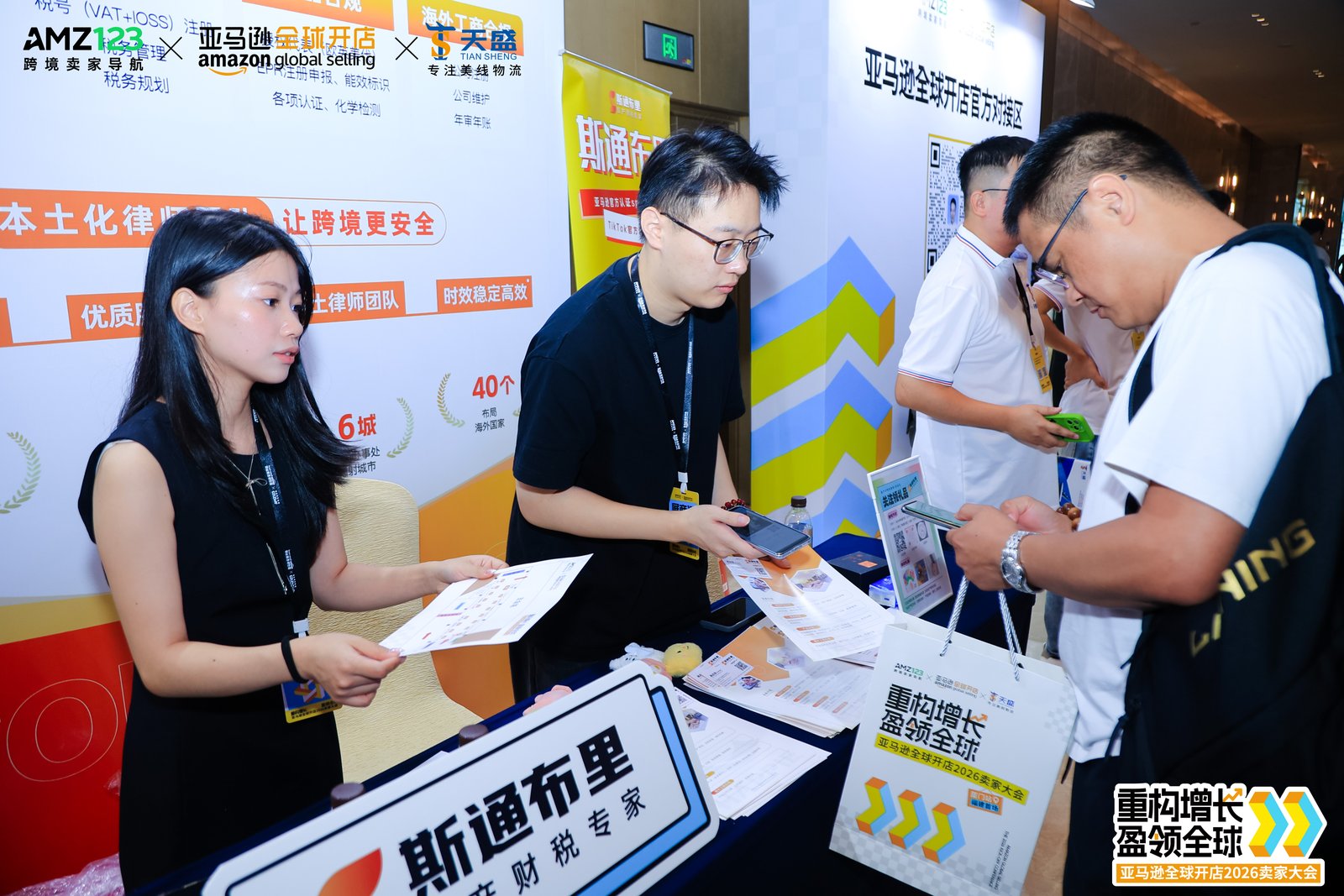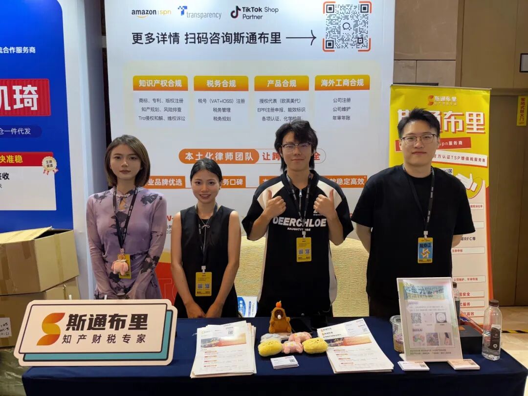 在大会现场的品牌展区,斯通布里团队打造的集展示、咨询、规划于一体的专业服务展位前,始终人头攒动,驻足咨询者络绎不绝。斯通布里团队成员与多家跨境电商企业展开一对一深度交流,针对卖家所提出的有关商标注册、税务申报、资质办理等问题,进行现场答疑,助力跨境卖家快速击破开店、运营各环节合规难题。