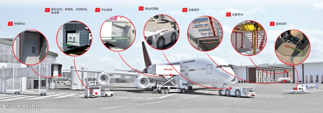 Rollon的产品亦广泛应用于飞机制造及相关配套系统,涵盖电池、发电机、空调系统等设备的移动、抽拉、平台延伸与维护需求,满足高负载、轻量化、耐腐蚀、易装配和长寿命的应用标准。