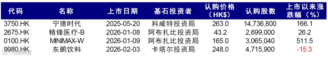 图表:2025年以来中东主权基金在港股IPO基石投资显著增加