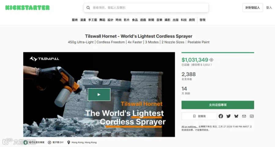 2026年1月,总部位于香港的工具品牌Hozo在Kickstarter推出“迷你细节砂光机”,聚焦3D打印件、木雕等精细打磨场景,精准锁定注重细节的创客与DIY群体。最终以超265万美元、1.4万+支持者的成绩收官,再次印证3D打印配套市场的强大势能。