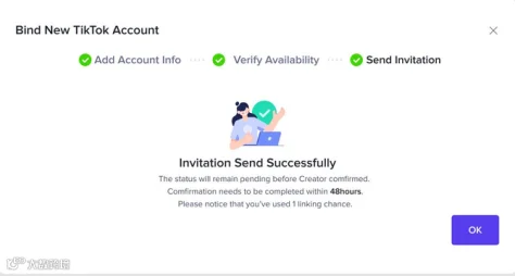 登录TikTok Shop后台 → 【我的账号】→ 【绑定TikTok账号】→ 输入达人ID → 选择“渠道账号”类型 → 发送邀请