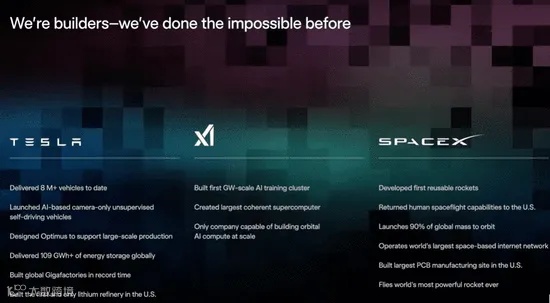 马斯克强调,特斯拉、xAI和SpaceX将联合推进该计划:特斯拉已证明电动汽车规模化可行性;xAI创下最快千兆瓦级算力集群建设纪录;SpaceX的星舰系统(V4型号运力达200吨)将解决太空物资运输瓶颈。为实现年入轨1000万吨载荷能力,SpaceX正进行关键技术攻关。
