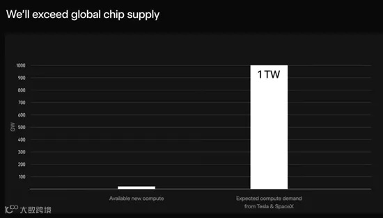 Terafab项目需实现年产能一太瓦(1,000吉瓦),但当前全球AI算力年产量仅20吉瓦。现有芯片工厂总和仅能满足该项目需求的2%,现有供应链扩张速度远低于项目要求。