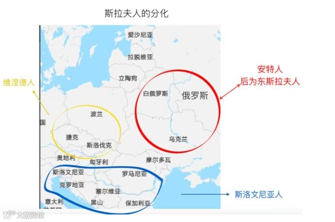 到了公元前4到6世纪,斯拉夫人中开始出现部落同盟,又由于民族大迁徙的冲击,逐步分化为3大支系。往西走的就成了波兰、捷克人的祖先,往南走就是保加利亚、塞尔维亚的祖先了。而往东走的就成为了乌克兰、白俄罗斯和俄罗斯人的祖先了,叫做东斯拉夫人。