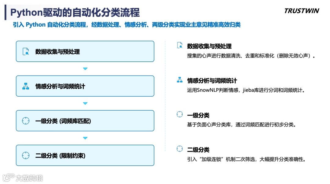 基于RPA自动化与Python数据分析技术,诚则成数据报告中心实现报告自动生成、客户心声智能分类、风险标签自动识别等功能,大幅提升数据处理效率与分类准确率。通过“自动化流程+数据库封装+二级分类机制”,真正实现管理由经验驱动向数据驱动转型。