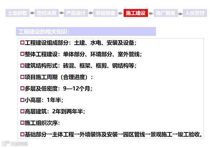 关键要素:竣工验收、集中入伙、项目后评估。