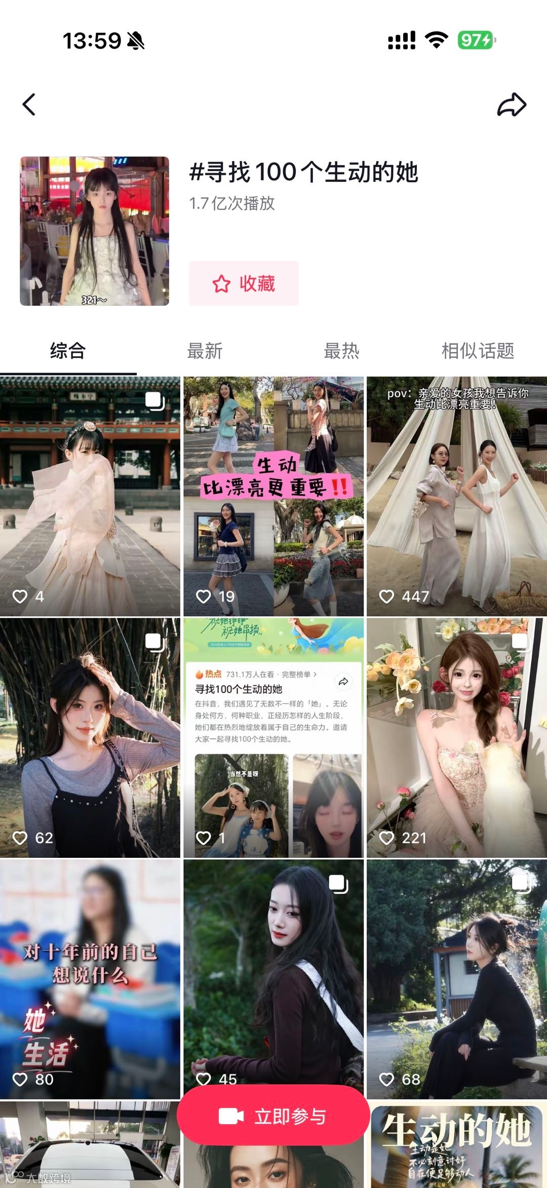 发起#寻找100个生动的她 记录挑战,鼓励用户分享素颜松弛、职场专注等日常瞬间。低门槛创作机制激发UGC热潮,超100位达人参与产出10个高赞视频,话题登顶抖音热点榜,形成集体叙事共同体。