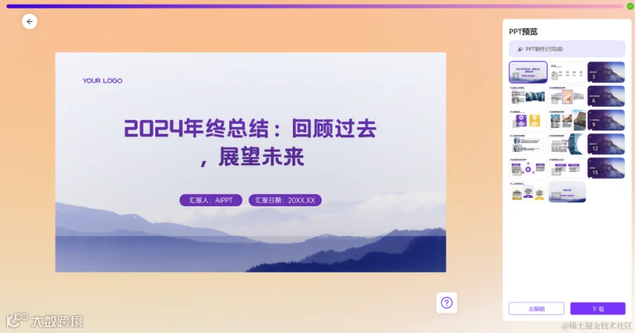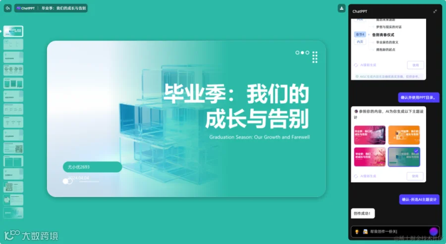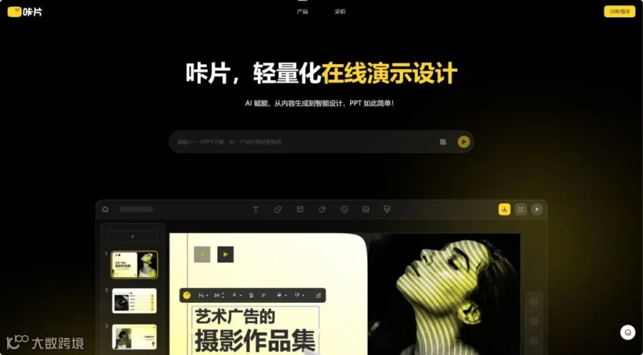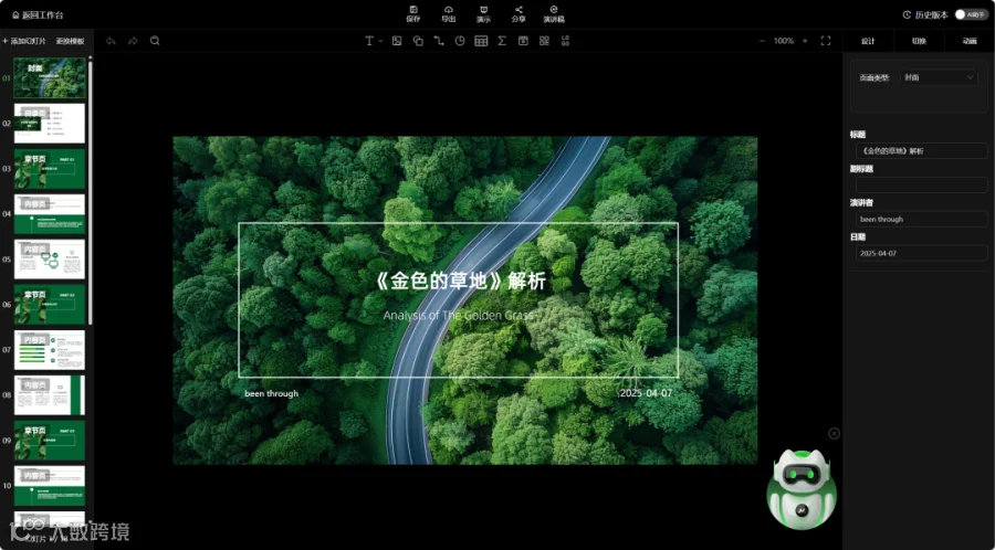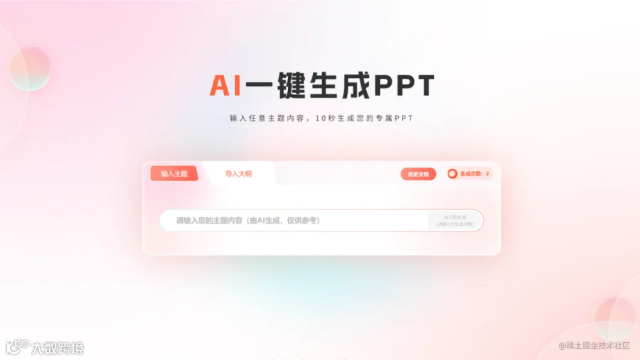 AI辅助PPT设计工具,支持输入主题自动生成内容。