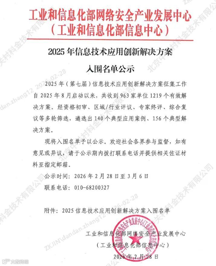近日,工信部网络安全产业发展中心公布“2025年信息技术应用创新解决方案”入围结果。中关村科金与中国电建财务公司联合申报的《基于大模型技术的金融数智化解决方案》从1219个有效方案中成功入选。