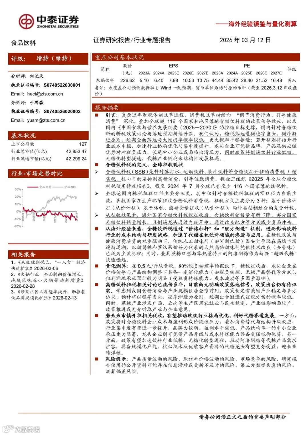 回复暗号:食品饮料行业海外经验镜鉴与量化测算:糖税风起,软饮行业影响几何?-260312-中泰证券-10页