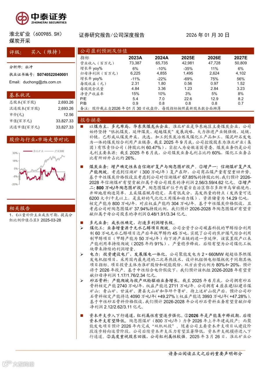 回复暗号:淮北矿业(600985)稀缺成长标的,盈利拐点将至-260130-中泰证券-18页