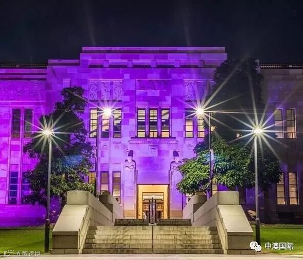 (昆士兰大学主楼,打上了UQ Purple“昆大紫”的校园色)