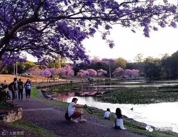 (昆士兰大学UQ Lakes旁边的蓝花楹)