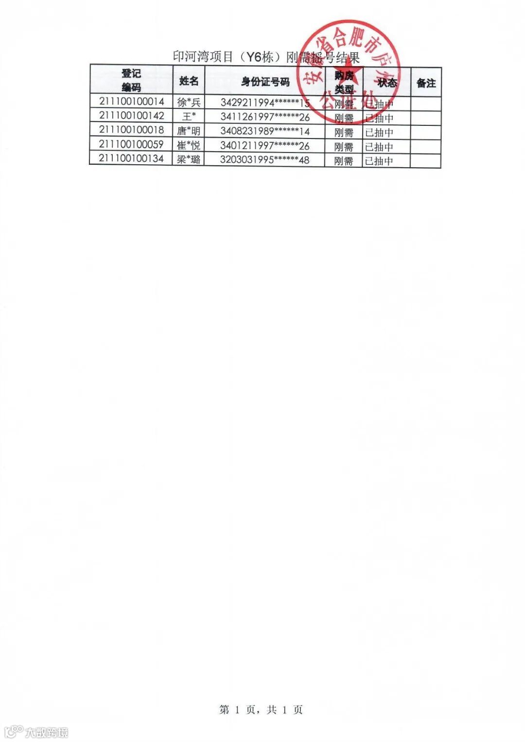 刚需摇号结果: