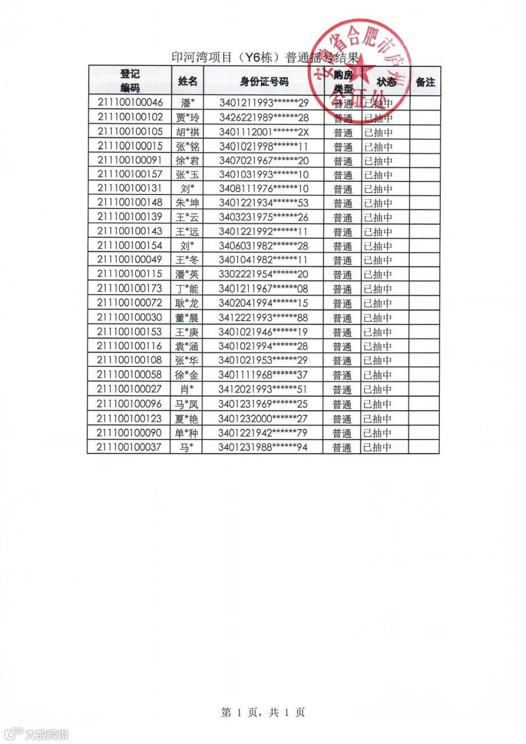 导读:印河湾项目Y6#楼选房资格公证摇号结果公示