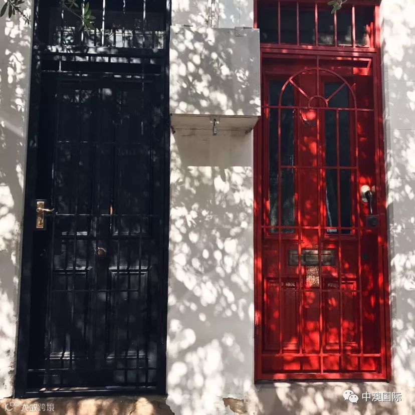 悉尼大学附近的一条街区,白色的墙壁和彩色的门户,超级ins风。