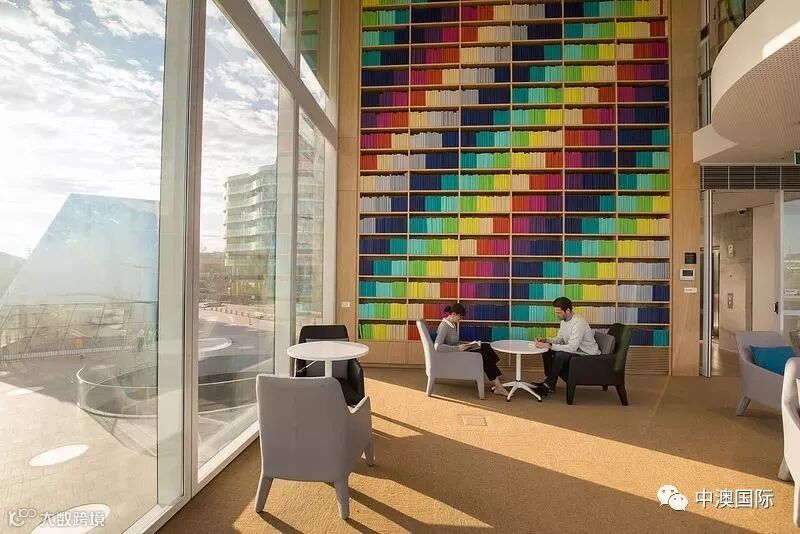 Green Square Library是一个地下图书馆,从路面上往图书馆看去,你能清楚地看到城市天际线倒映在图书馆外部的玻璃砖上;图书馆内还有一整面“顶天立地”的彩虹书墙,超美der~