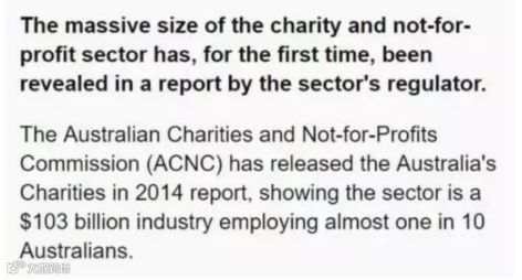 据2014年的一份调查报告说澳洲慈善业基本上雇佣了澳洲近10%的劳动力,年收入达到1030亿澳元。