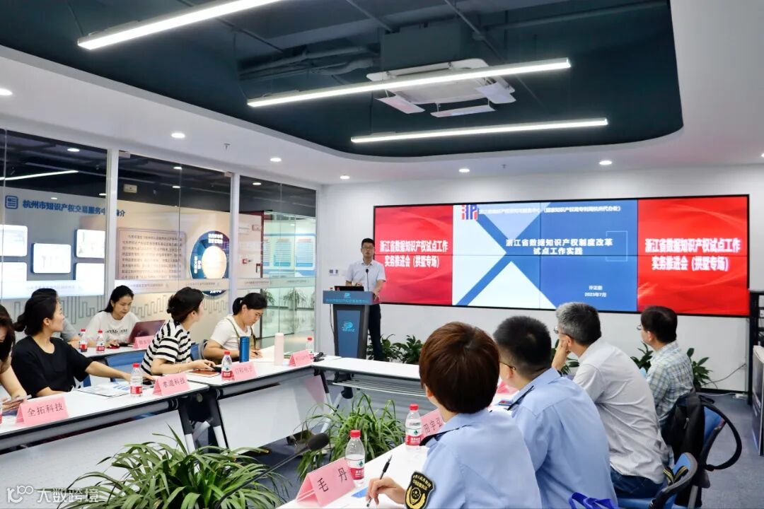 为促进数据要素创新运用,规范数据知识产权登记工作,加快数据知识产权实施与转化,7月14日,杭州市知识产权交易服务中心承办了数据知识产权试点工作实务推进会。区市场监督管理局党委委员、副局长陈丹坚出席.拱墅区28家意向参与数据知识产权登记的企业及服务机构相关负责人等40余人参会。