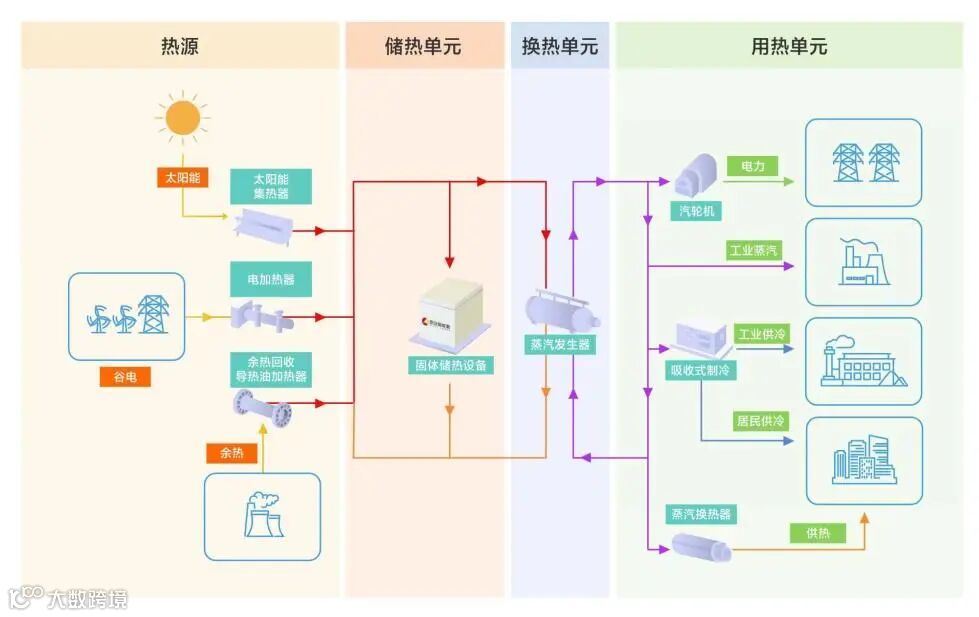 ●谷电/光伏风电+储热:利用电热转换装置将电能转化为热能存储,根据热量需求配置换热装置实现连续供暖/供热水需求。