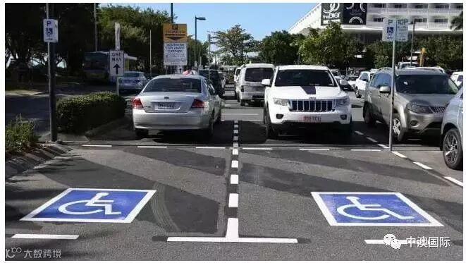 所有的商场,超市,大型商店门外都划分出残疾人的专用停车位,这些车位更靠近店门口,位置更大,为的就是方便进出。