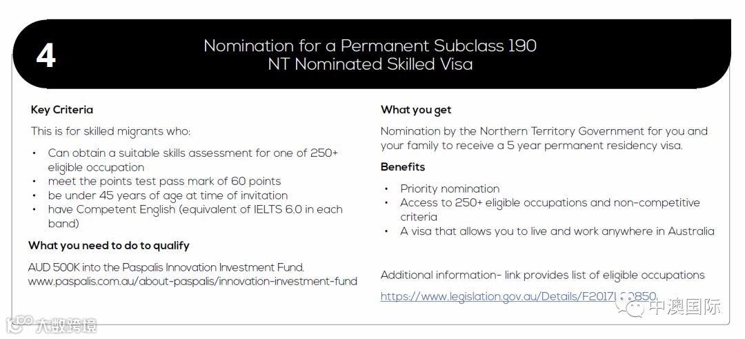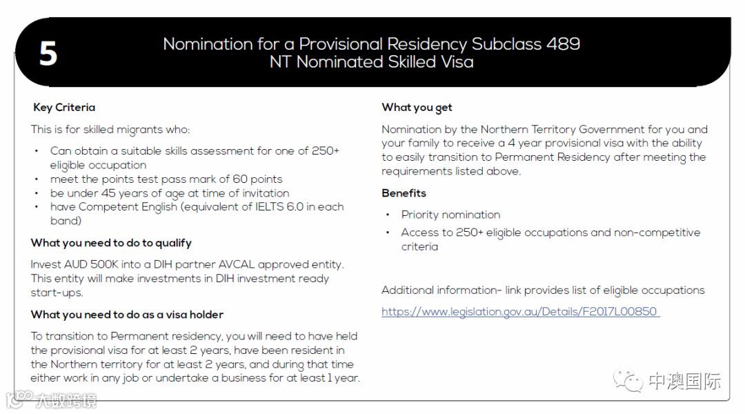 489为准PR签证,允许签证持有人在北领地生活至少2年,或工作至少1年(任何工作,不需要与提名工作相关),就可以换PR