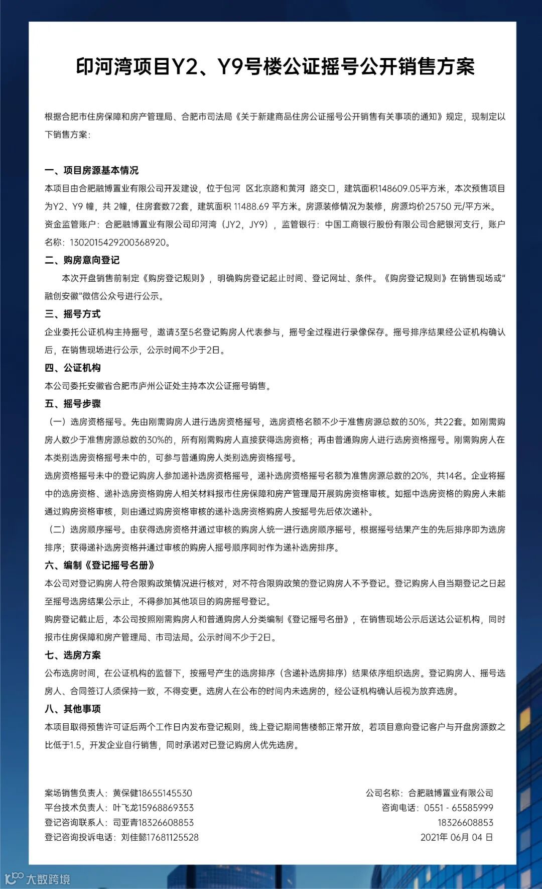 印河湾项目Y2、Y9、G8号楼购房销售方案&登记规则