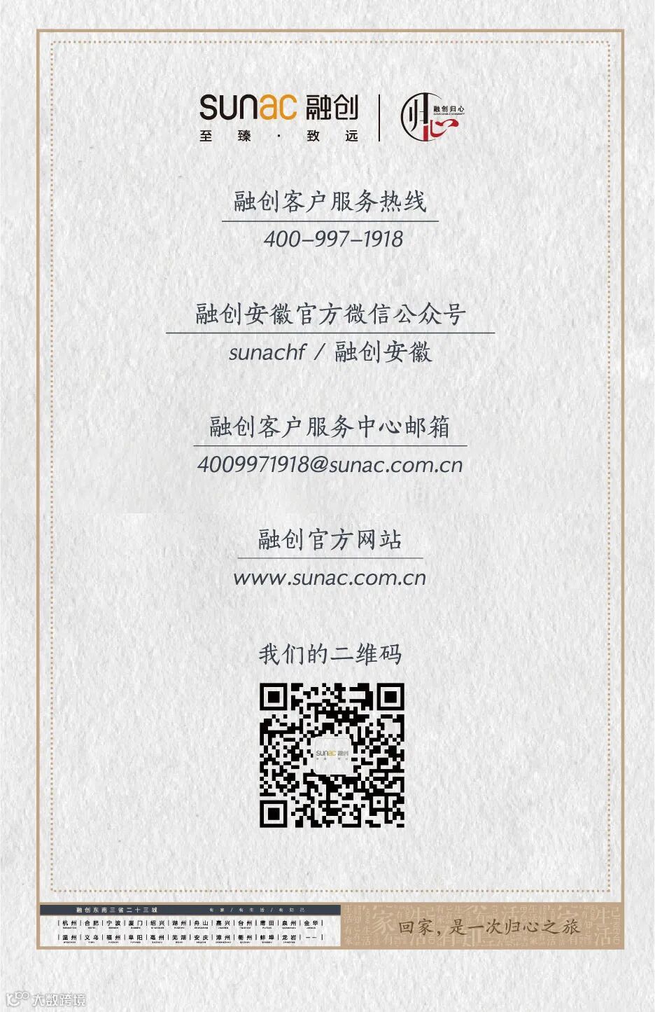融创安徽公司是香港联交所上市公司融创中国在安徽从事住宅及商业地产综合开发的城市公司,坚持区域聚焦和高端精品的发展战略,致力于成为覆盖全产品周期以及全生活周期的美好生活整合服务商。