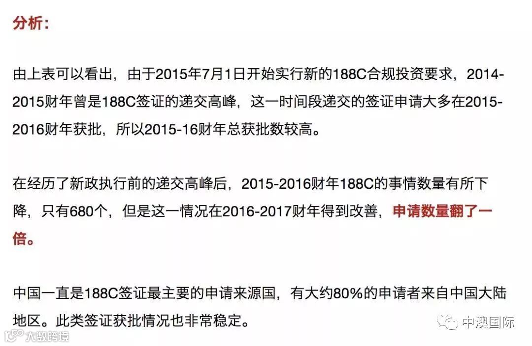 大家可以看出,188A、188B、188C和132A签证受到众多来自世界各地(尤其是中国大陆)企业家和投资者的青睐并且申请数量逐年上升。