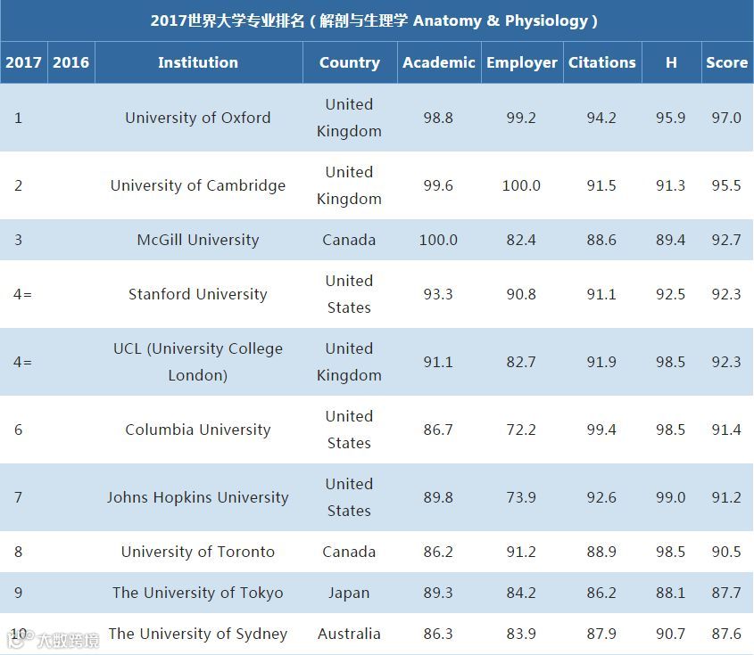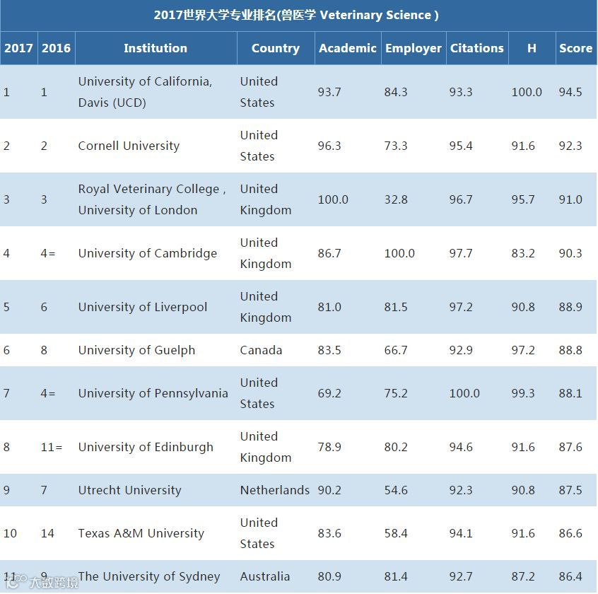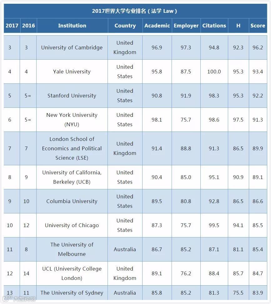 还有其他专业也是非常厉害的,比如护理学,兽医学,法学,解剖与心理学,分别为第9,第11,第13,第10。
