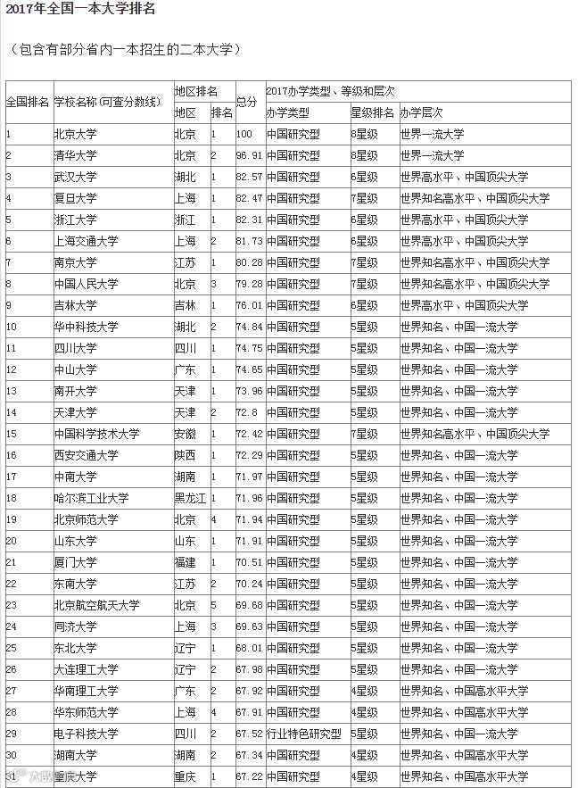 以这样的分数,可以上的中国一本大学有(部分):