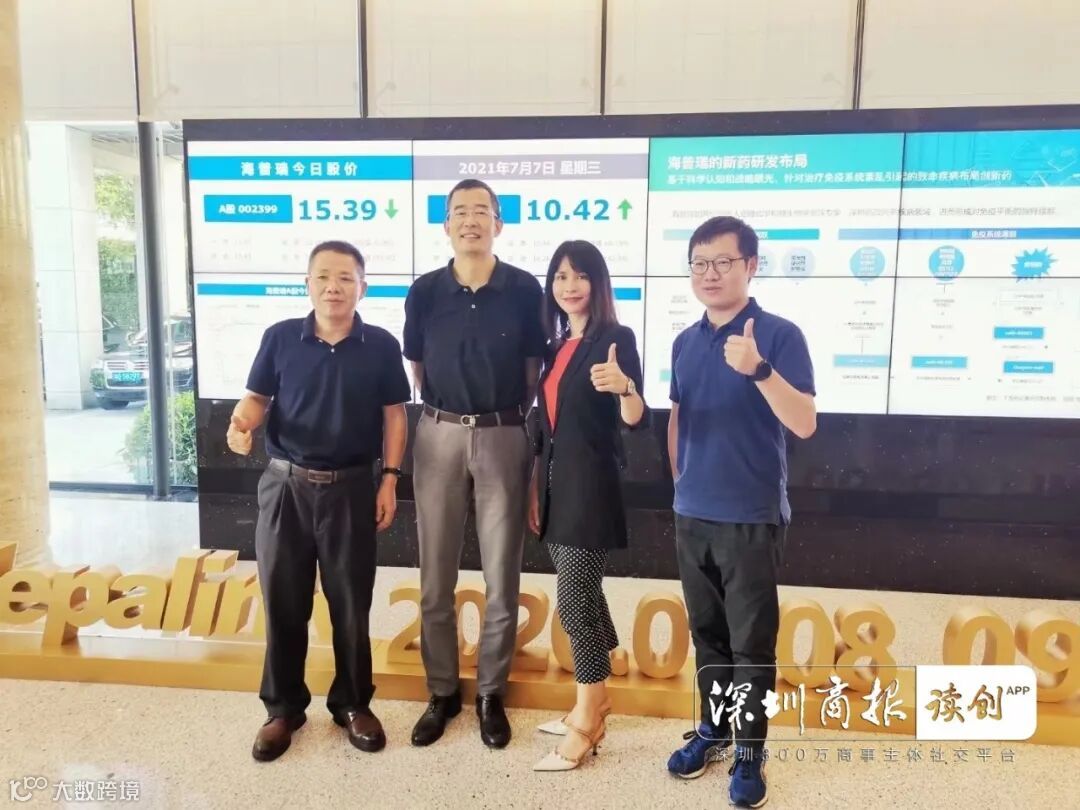 (图:读创/深圳商报记者与海普瑞韩涛女士【右2】、李建科博士【左2】合影。由读创/深圳商报摄影记者刘文英拍摄)