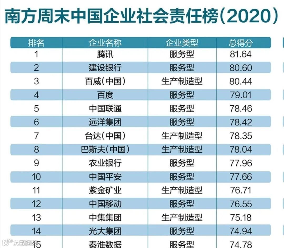 据介绍,今年调研从2021年1月启动,基于问卷、企业公开资料、相关数据库及媒体信息等展开分析,最终形成2020年南方周末中国企业社会责任榜单。