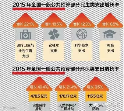2015年的国家账本,关于花钱这部分,也就是中央一般公共预算支出一共分为13个部分。两会期间代表委员热议的,便是关于民生和环保支出的大幅增加,这显示了中央促民生的决心。如果按照增速来排序的话,在2015年中央13个支出部分中,医疗卫生与计划生育支出增长22.1%,农林水支出增长18.6%,科学技术支出增长12.3%,教育支出增长8.8%。将这些大数字,结合报告中公布的细节做一个转换,可能更容易理解这些增长出来的钱究竟要花到哪里去。比如在2015年国家对中职学校、普通高中的助学金从年生均1500元提至2000元;按照10%的幅度提高企业退休人员基本养老金水平,新农合及城镇居民基本医疗的财政补贴标准从每人每年320元提至380元;保障房逐步从实物保障为主转向实物保障和货币补贴并举等。