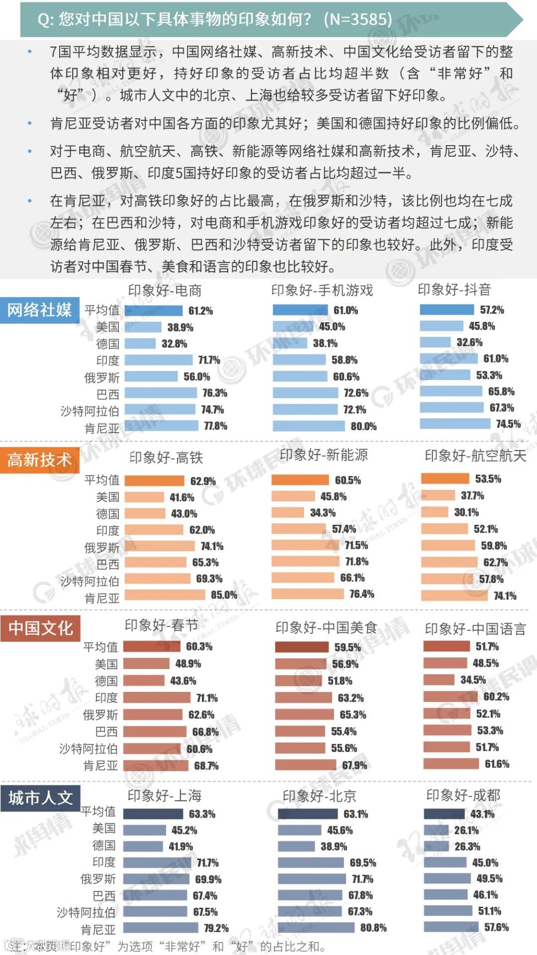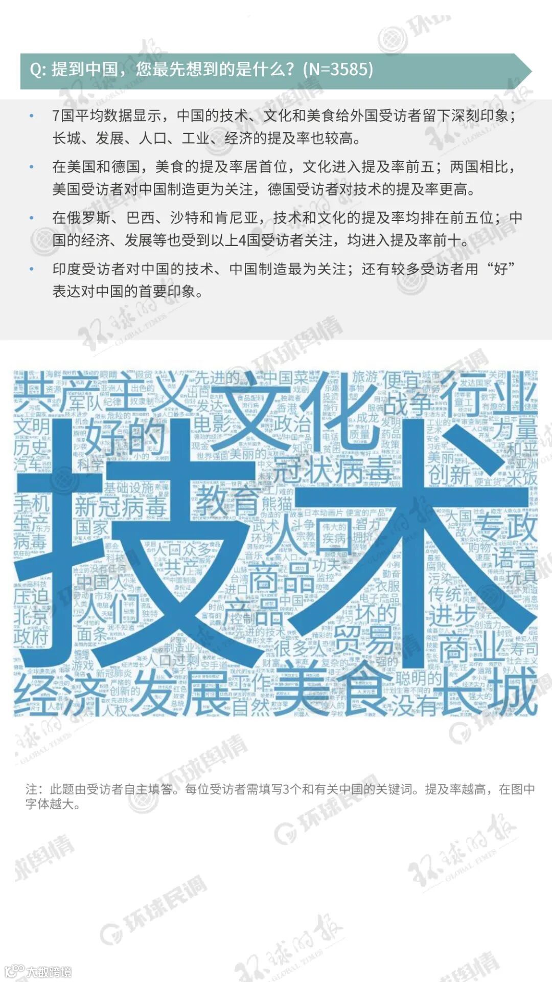 • 提到中国,海外年轻人首先想到中国的技术、文化和美食;高铁、手机游戏和电商等成为最新“中国符号”。