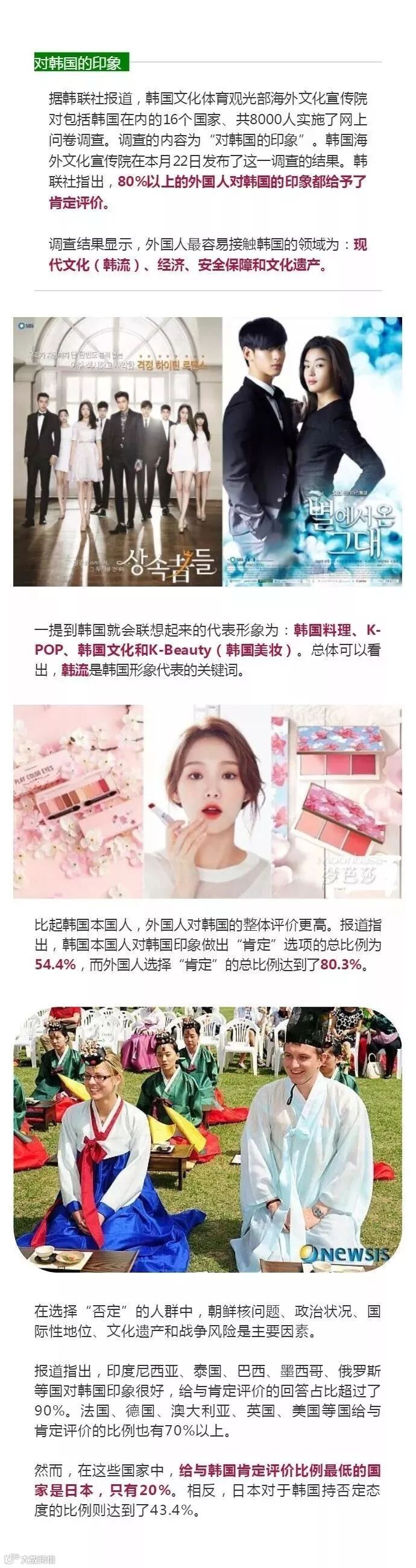 对韩国的印象民调:外国人比韩国人更肯定韩国