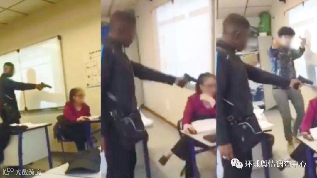 近日,法国巴黎南郊一名高中生在学校里持假枪威胁老师。有人录下事发经过并上传社交网络引起舆论强烈反响。