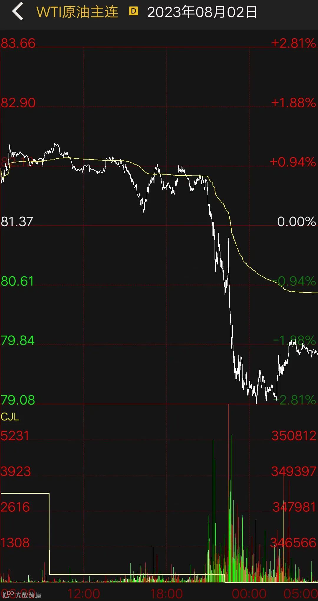 截至收盘,NYMEX原油期货9月合约下跌1.88美元/桶,跌幅2.3%,报79.49美元/桶;ICE布伦特原油期货10月合约下跌1.71美元/桶,跌幅2%,报83.20美元/桶。
