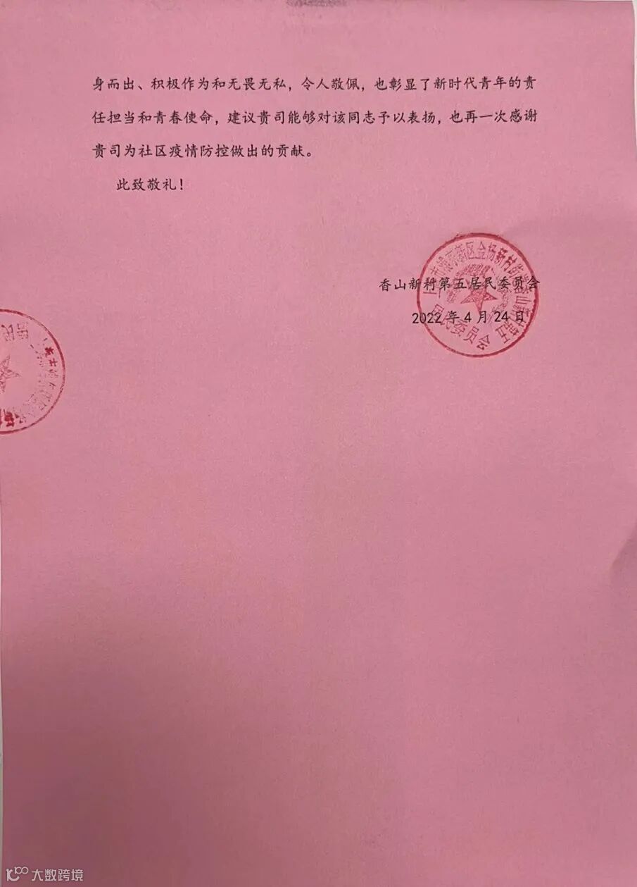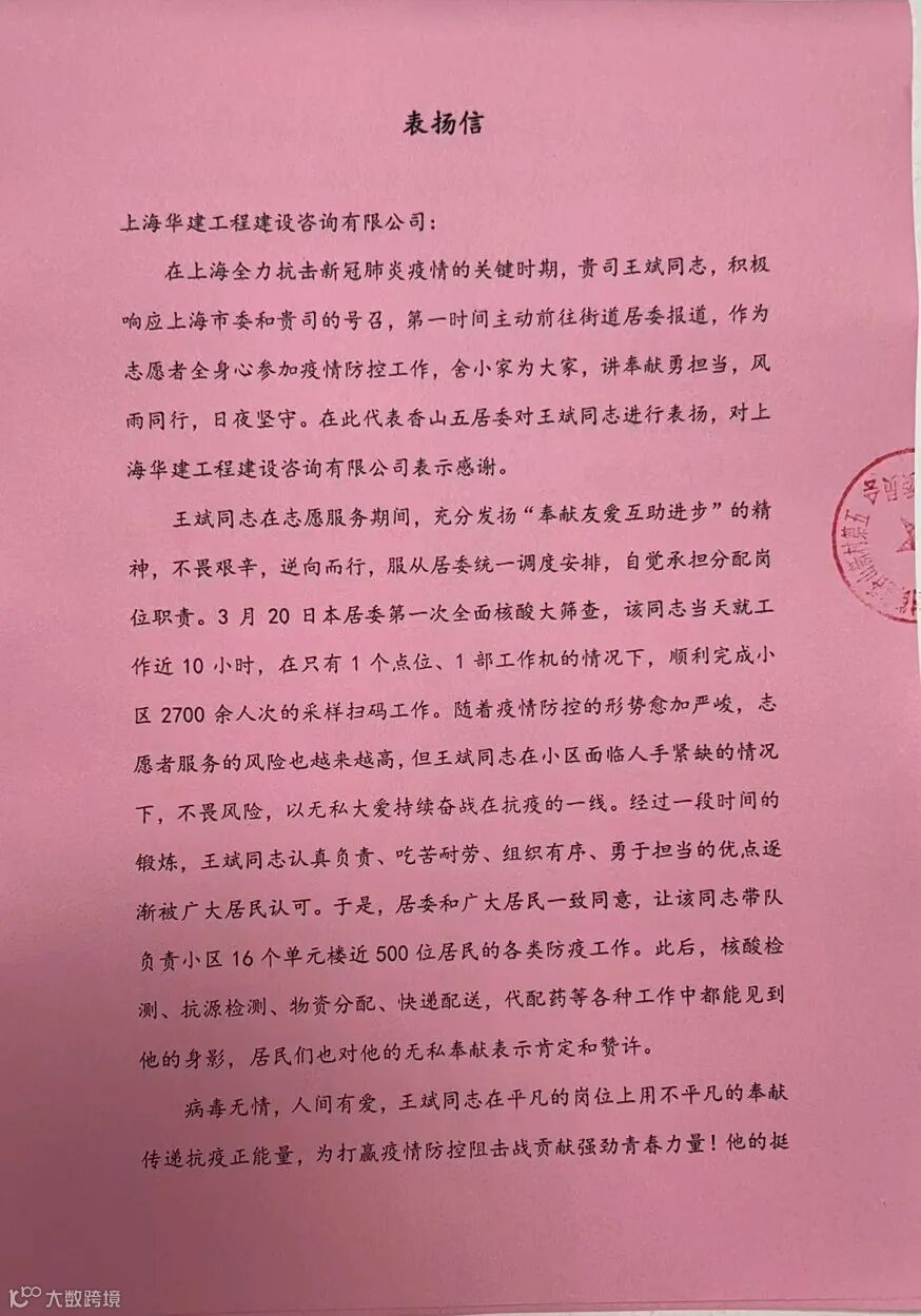 志愿者服务是辛苦的,劳累的,但看到广大居民的信任,听到楼栋长辈、小辈们一声声脆脆的感谢,那一丝丝疲劳和不安也立即烟消云散。当然,我也不是一个人在战斗,公司和集团作为坚强的后盾,一次次给我及时的关心慰问,不仅送来了几批次的爱心物资,还时不时通过电话给我支持下去的力量。现在上海疫情防控已经到了最关键、最吃劲的阶段,我坚信抗疫必将取得胜利,而我无论何时都会时刻准备着去最需要的地方做最需要的事!