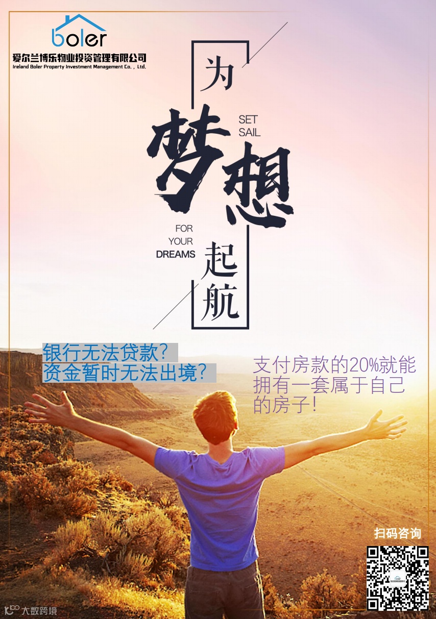 导读:【为梦想起航】爱尔兰无法贷款?资金不足?支付20%房款即可拥有属于自己的房子!