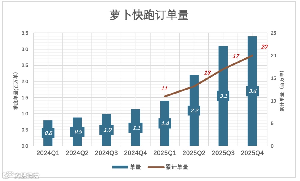 2025年Q4,全无人驾驶单量340万单,累计2000万单;