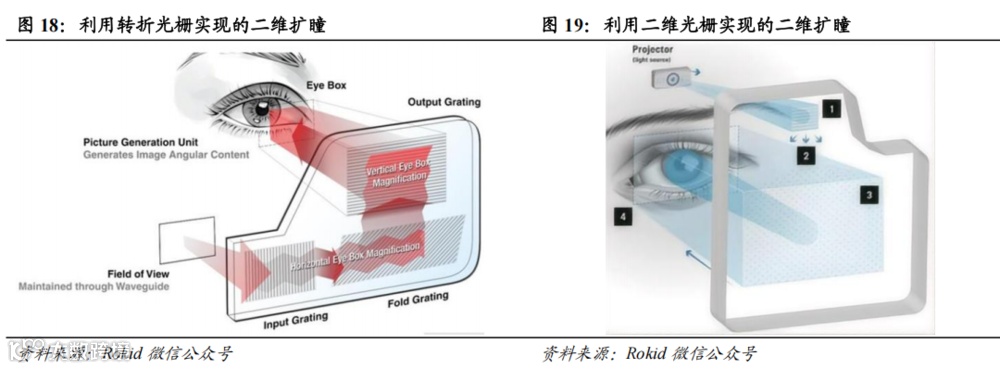 目前,光波导技术的主流方案可分为几何光波导和衍射光波导两大类。衍射光波导二维扩瞳技术已形成转折光栅与二维光栅两大技术路线,两者各有特点。