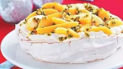 这里的Passion & Mango Pavlova是澳洲人国庆必点的一道甜品,澳洲人简称为Pav,中文名叫做巴甫洛娃蛋糕或白露华蛋糕,是以苏联芭蕾舞演员安娜·巴甫洛娃的名字命名。传说是在巴甫洛娃在访问澳洲或新西兰时,为纪念这位伟大的芭蕾舞演员而发明的。这里的Pav是由百香果和芒果制作的水果蛋糕。