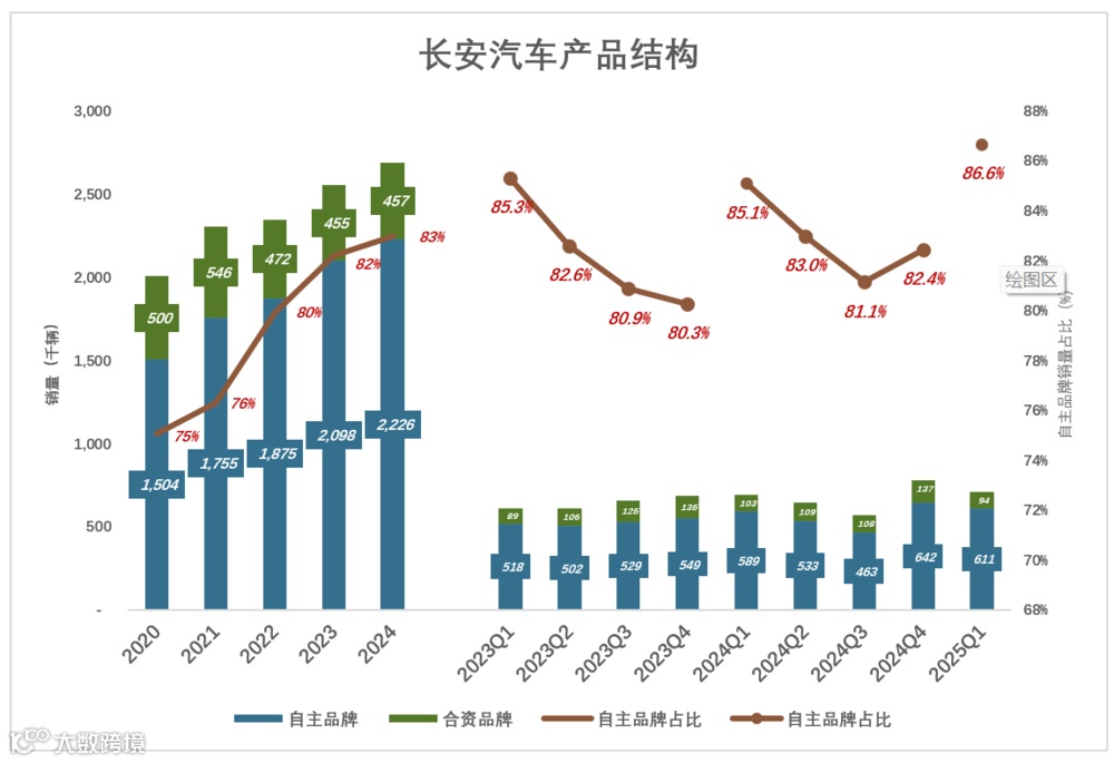 长安汽车自主品牌的增长态势优于其他巨头:
