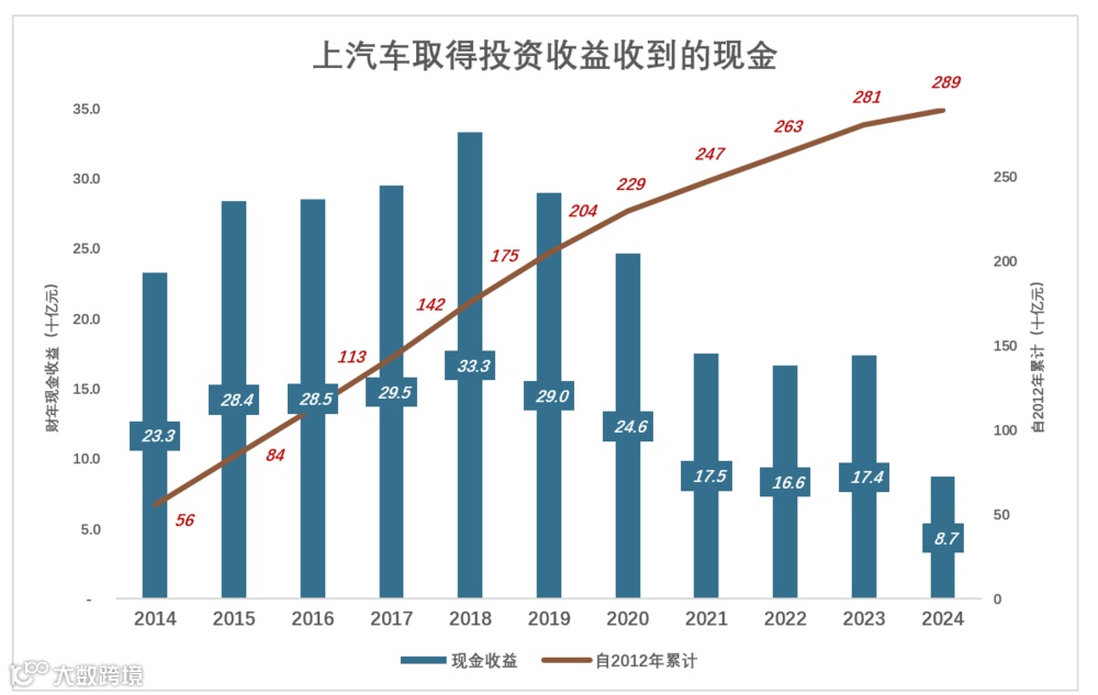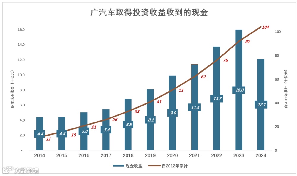 2024年,广汽获得现金收益大幅降至121亿;