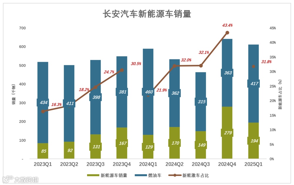 2024年,长安新能源车销量73.5万辆、占总销量的27.4%;