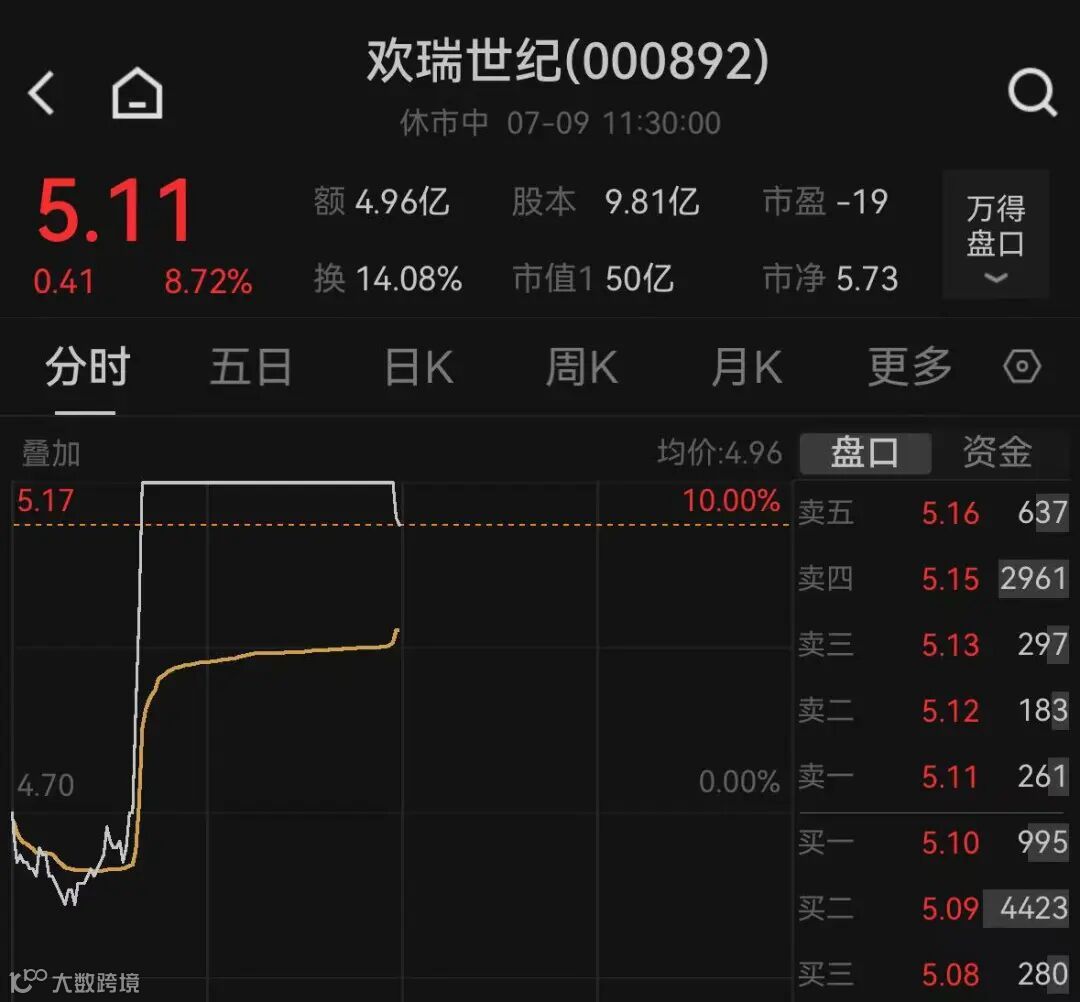 短剧概念股表现活跃,欢瑞世纪涨停。