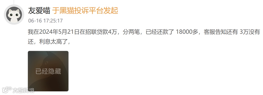 即便,现在招联消金拿到低利率资金,但仍给用户高息贷款。有用户在黑猫投诉表示,其贷款利率接近24%。毕竟,招联消金要用高利息对冲坏账的风险。